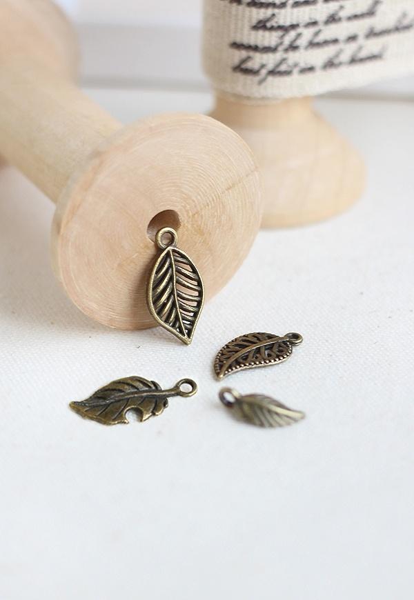 포인트 장식으로 활용하기 좋은 나뭇잎 모양의 금속장식 입니다.