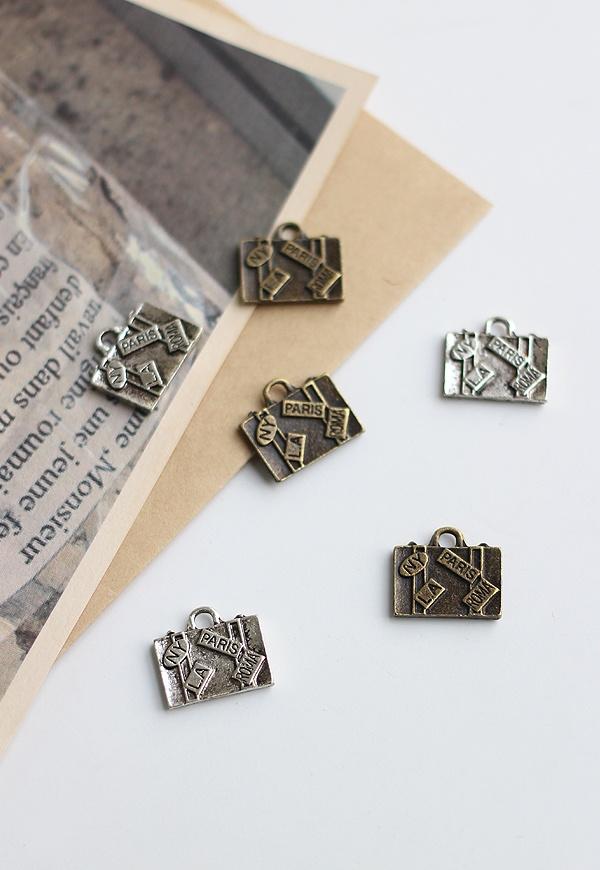빈티지한 버니쉬 컬러의 여행가방 모양인 참장식 입니다.